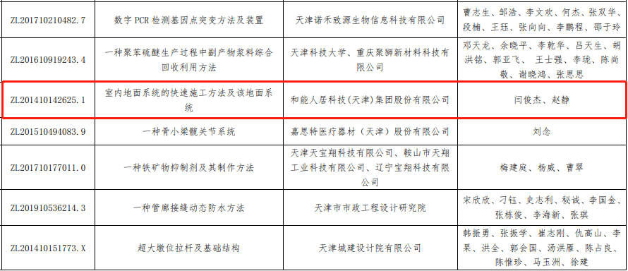 近日,天津市知識產(chǎn)權(quán)局公示了2022年度專利獎評審結(jié)果,由和能人居科技申報的發(fā)明專利ZL201410142625.1“室內(nèi)地面系統(tǒng)的快速施工方法及該地面系統(tǒng)”榮獲天津市專利優(yōu)秀獎。