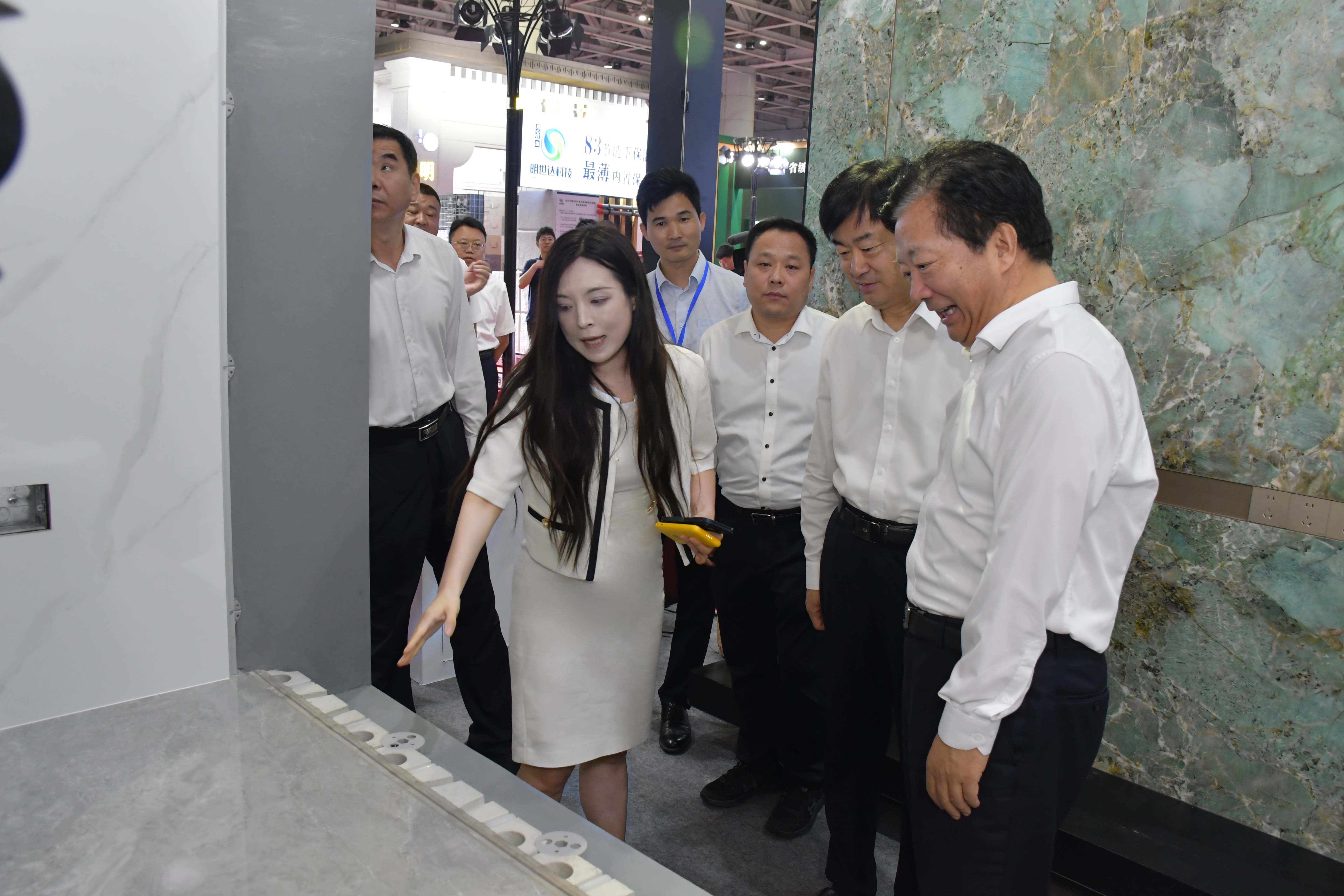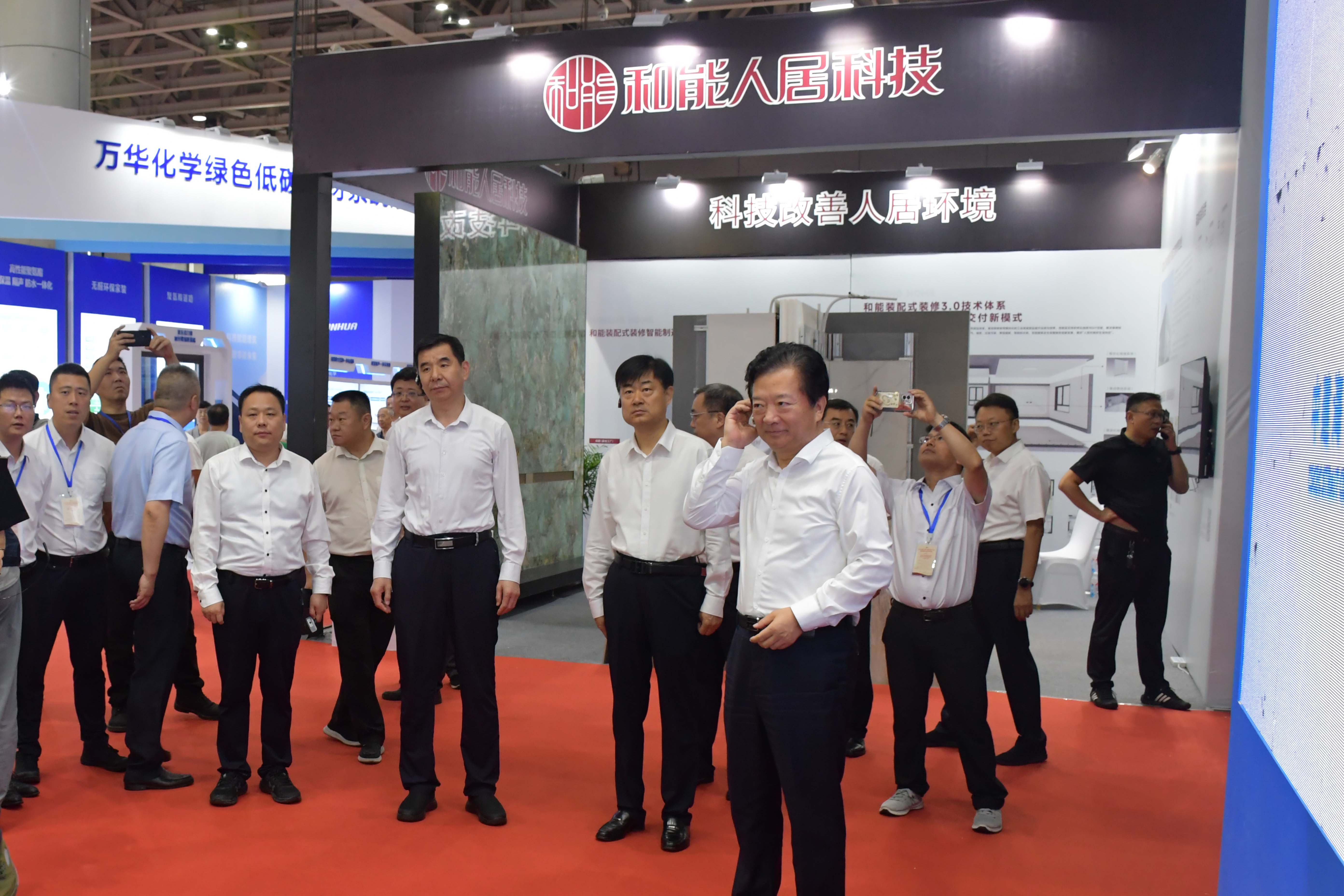 6月20日,2025山東省夏季購房節(jié),中國(guó)(煙臺(tái))住博會(huì)暨高品質(zhì)住宅發(fā)展大會(huì)在煙臺(tái)國(guó)際博覽中心啟幕。省政府副秘書長(zhǎng)劉斯杰,中國(guó)房地產(chǎn)業(yè)協(xié)會(huì)會(huì)長(zhǎng)陳宜明,省住房城鄉(xiāng)建設(shè)廳黨組書記任海濤,煙臺(tái)市委副書記、市長(zhǎng)鄭德雁,省住房城鄉(xiāng)建設(shè)廳黨組成員、副廳長(zhǎng)麻鵬飛等領(lǐng)導(dǎo)蒞臨和能人居綠色科技裝配式內(nèi)裝展廳,和能人居科技華北區(qū)域總經(jīng)理吳丹等集團(tuán)領(lǐng)導(dǎo)全程接待講解。蒞臨展位的一行領(lǐng)導(dǎo)對(duì)綠色科技工業(yè)化內(nèi)裝產(chǎn)品的精度、效果、品質(zhì)予以肯定,并指出煙臺(tái)高品質(zhì)好房子建設(shè)需要綠色新技術(shù)。